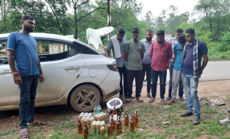 कार से भारी मात्रा में शराब जप्त, 5 आरोपी गिरफ्तार