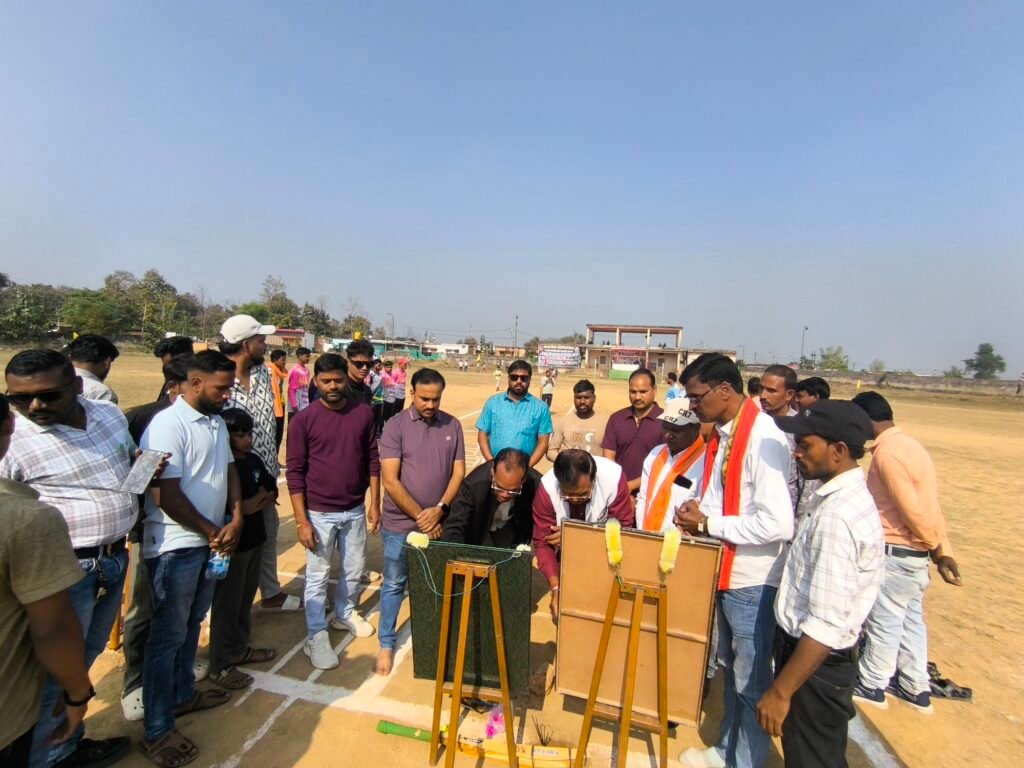 क्रिकेट प्रतियोगिता का शुभारंभ अतिथियों द्वारा क्रिकेट मैदान में पूजा-अर्चना कर किया गया। इसके बाद अतिथियों ने दोनों टीमों के खिलाड़ियों से परिचय प्राप्त कर मैच का औपचारिक आगाज़ किया।