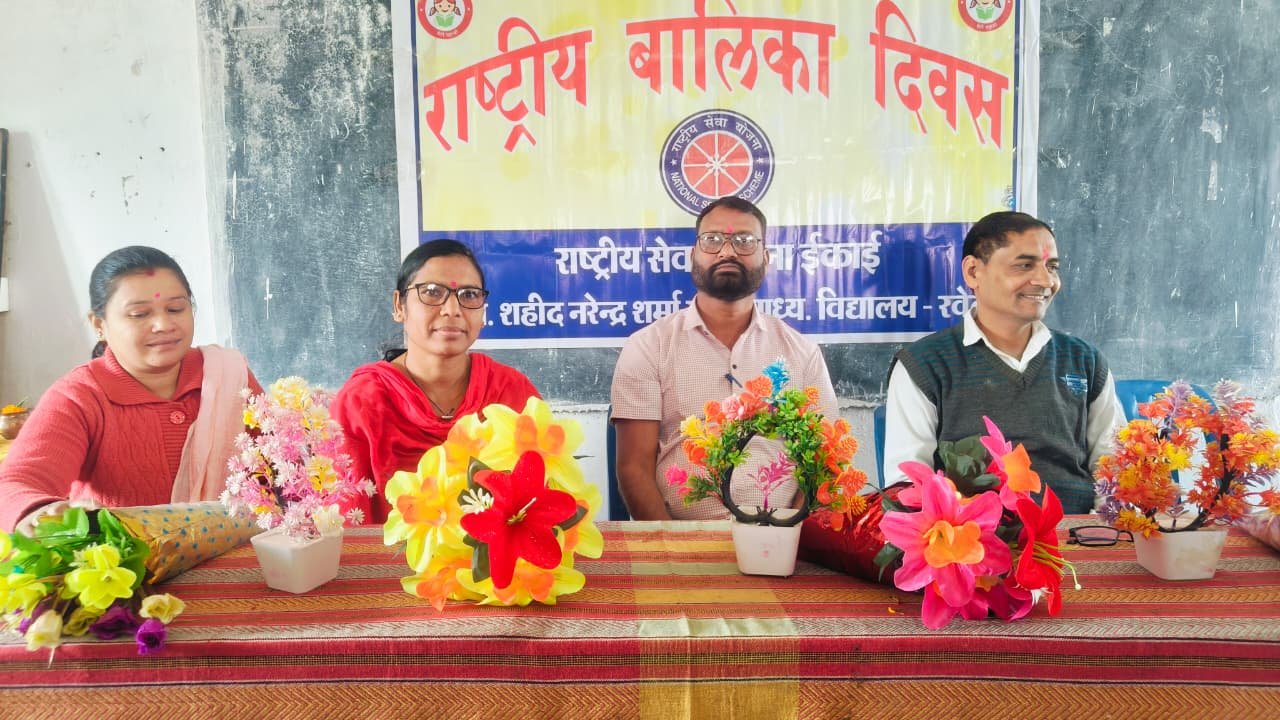 शहीद नरेंद्र शर्मा शास. उच्च. माध्यमिक विद्यालय रवेली में संचालित राष्ट्रीय सेवा योजना इकाई द्वारा राष्ट्रीय बालिका दिवस कार्यक्रम का आयोजन किया गया। सर्वप्रथम प्रवेश द्वार में बालिकाओं के ऊपर पुष्प वर्षा करते हुए तिलक लगाकर उनको कार्यक्रम कक्ष में प्रवेश कराया । तत्पश्चात मां सरस्वती की तैल्य चित्र पर दीप प्रचलित कर, वंदना किया । एवं शिक्षकों को पुष्पगुच्छ भेट कर तिलक लगाकर सम्मानित किया गया l कार्यक्रम में उपस्थित श्री वीरेन्द्र कुमार शर्मा व्याख्याता द्वारा बेटियों की जन्म से लेकर सामाजिक परिस्थितियों से अवगत कराते हुए, बताओ न बाबू जी की याद मेरे आती नहीं गीत गाकर उपस्थित छात्रों की आंखे नम कर दिया ,रा.से.यो. कार्यक्रम अधिकारी जितेन्द्र कुमार राजपूत ने 12 वीं के उपस्थित विद्यार्थियों को संबोधित करते हुए कहा कि खुशी इस बात का है कि आप शिक्षा एक महत्वपूर्ण चरण पूरा करने जा रहे है । हमे गर्व है कि आपके अनेक अच्छे कार्यों से विद्यालय का नाम रोशन किया है और उदासी इस बात की है कि आप हमारे दिनचर्या की हिस्सा नहीं रहेंगे। विद्यालय में बिताए गये वर्षों में आपको शिक्षकों के द्वारा न केवल आपको शिक्षा दी गई बल्कि आपके जीवन की चुनौतियों को सामने करने के लिए भी तैयार किया है। मैं आपसे कहना चाहूंगा कि आप हमेशा ईमानदारी , मेहनत और अनुशासन का पालन करें। जीवन में कितनी भी कठिनाई आये , कभी हार ना माने सफल वही होता है जो अपने लक्ष्य के प्रति अडिग रहता है। आपके नए सफर की शुरुआत की आपको शुभकामनाएं। आप जहां भी जाए सफलता आपके कदम चूमे l आप इस विद्यालय को कभी मत भूलना हमेशा गर्व से कहे कि आप इस विद्यालय के छात्र रहे है । श्री विजय कुमार चंद्रवंशी व्याख्याता ने विद्यार्थियों को उनके उज्जवल भविष्य की मंगल कामना करते हुए कहा कि सफलता का कोई शार्ट कट रास्ता नहीं है , कड़ी मेहनत ही सफलतबका कुंजी है इसलिए आगामी वार्षिक परीक्षा की तैयारी लगन से करे इस कार्यक्रम में संस्था के प्राचार्य जोध्या राम बंजारे , व्याख्याता किशन लाल सत्यवंशी सहा. कार्य.अधिकारी,सुश्री राधिका मंडावी , श्रीमति भावना साहू के साथ समस्त स्टाफ, दलनायिका गोदावरी साहू, दिपाली चंद्रवंशी, रेशमा, प्रियंका, दुर्गेश्वरी,सुप्रिया, गंगा,आरती, मधु, प्रियंका,उर्वशी रोशनी, युमी, टिकेश्वरी, गायत्री, किरण, पायल, पिंकी, संजना, स्नेहा,स्तुति,प्रियंका साहू, लल्ली, राधिका, सीमा,ज्योति एवं समस्त छात्राये उपस्थित थे जिनको प्राचार्य के द्वारा उज्ज्वल भविष्य की शुभ मंगलकामना के साथ बालिका दिवस पर बधाई दिया l