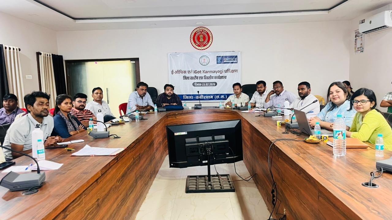कवर्धा, 23 फरवरी 2026। जिले में ई-ऑफिस के प्रभावी क्रियान्वयन के लिए अधिकारियों और कर्मचारियों को प्रशिक्षण दिया गया। कलेक्टर श्री गोपाल वर्मा के मार्गदर्शन में यह प्रशिक्षण दो पालियों में संयुक्त जिला कार्यालय के सभाकक्ष में आयोजित हुआ, जिसमें जिले के सभी विभागों एवं कार्यालयों के अधिकारी-कर्मचारियों ने भाग लिया। प्रशिक्षण में अधिकारियों को ई-ऑफिस प्रणाली, ई-एचआरएमएस और स्पैरो पोर्टल से संबंधित बारीकियों की जानकारी दी गई। इस प्रशिक्षण का उद्देश्य प्रशासनिक कार्यों में पारदर्शिता, गति और जवाबदेही सुनिश्चित करना है।
