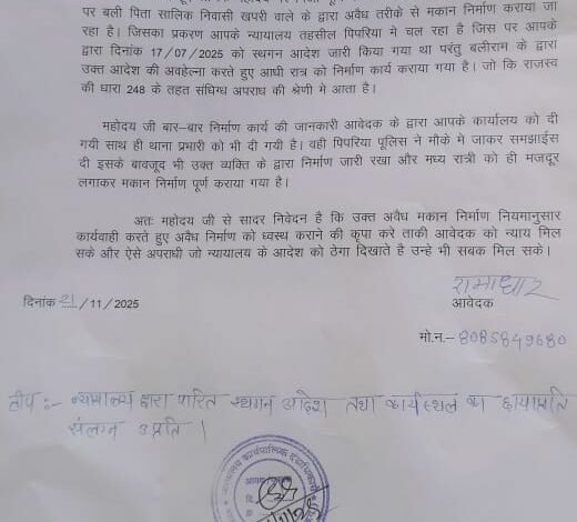 इस मामले को लेकर आवेदक रामधार सिन्हा ने संबंधित न्यायालय/तहसील में आवेदन प्रस्तुत कर प्रशासनिक हस्तक्षेप की मांग की है, ताकि अवैध निर्माण पर तत्काल रोक लगाई जा सके।