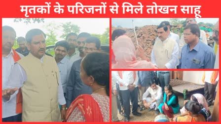 कवर्धा: लोहारिडीह घटना ने शासन और प्रशासन की निंद उड़ा रखी है, शासन में विधायक मंत्री लागातार घटना स्थल का जायजा लेने पहुंच रहे हैं, और मृतक परिवार को न्याय का आश्वासन दे रहे हैं, सोमवार को केंद्रीय मंत्री तोखन साहू भी लोहारिडीह गांव पहुंचे और मृतक प्रशांत साहू, मृतक शिवप्रसाद और मृतक रघुनाथ साहू के परिजनों से मुलाकात की, इस दौरान रघुनाथ साहू के परिजनों ने मंत्री को आपबीती बताई और उनके घर में आग लगाकर उनके पिता की हत्या करने वाले आरोपियों को कड़ी से कड़ी सजा देने की मांग की है, मंत्री तोखन साहू ने एसडीएम को मृतक परिवार के घर में भोजन व्यवस्था कराने और इलाज की सुविधा मुहैया कराने के निर्देश दिए हैं।